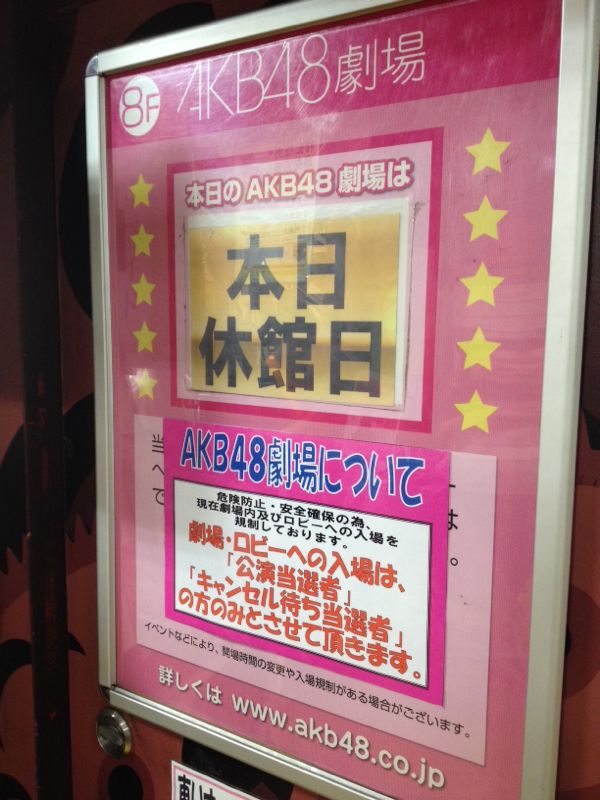 AKB劇場には行けなくて警備の人が道をふさいでました。
